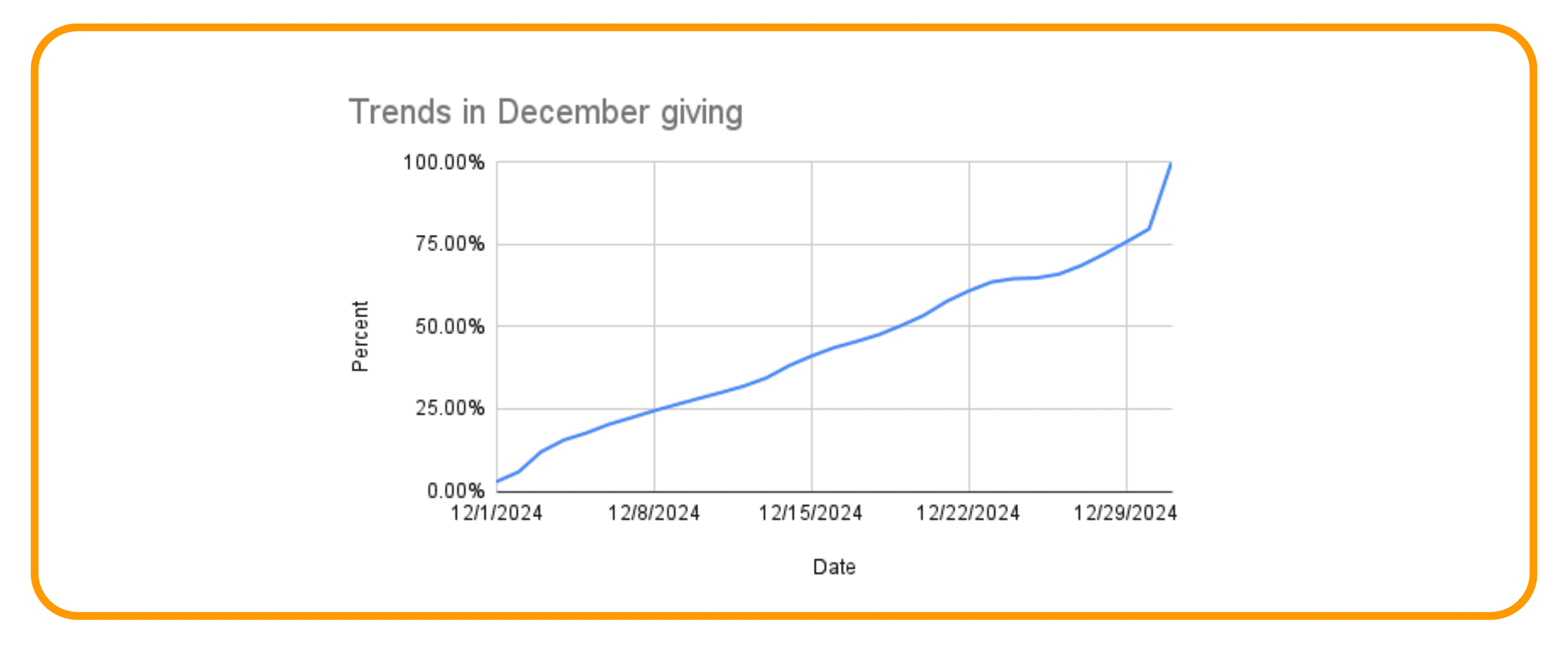 Most giving happens late: Most year-end donations roll in during the last week of December, particularly on December 31.