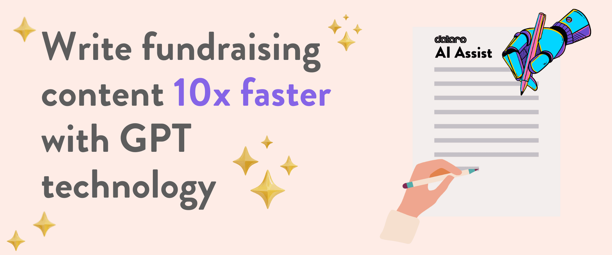 Dataro has been building AI-powered tools that help fundraisers save time and raise more funds for their missions since 2017. Now, with AI Assist, fundraising and development teams can speed up their content creation process and reclaim time for more meaningful activities like engaging supporters and testing new donor acquisition and retention strategies.