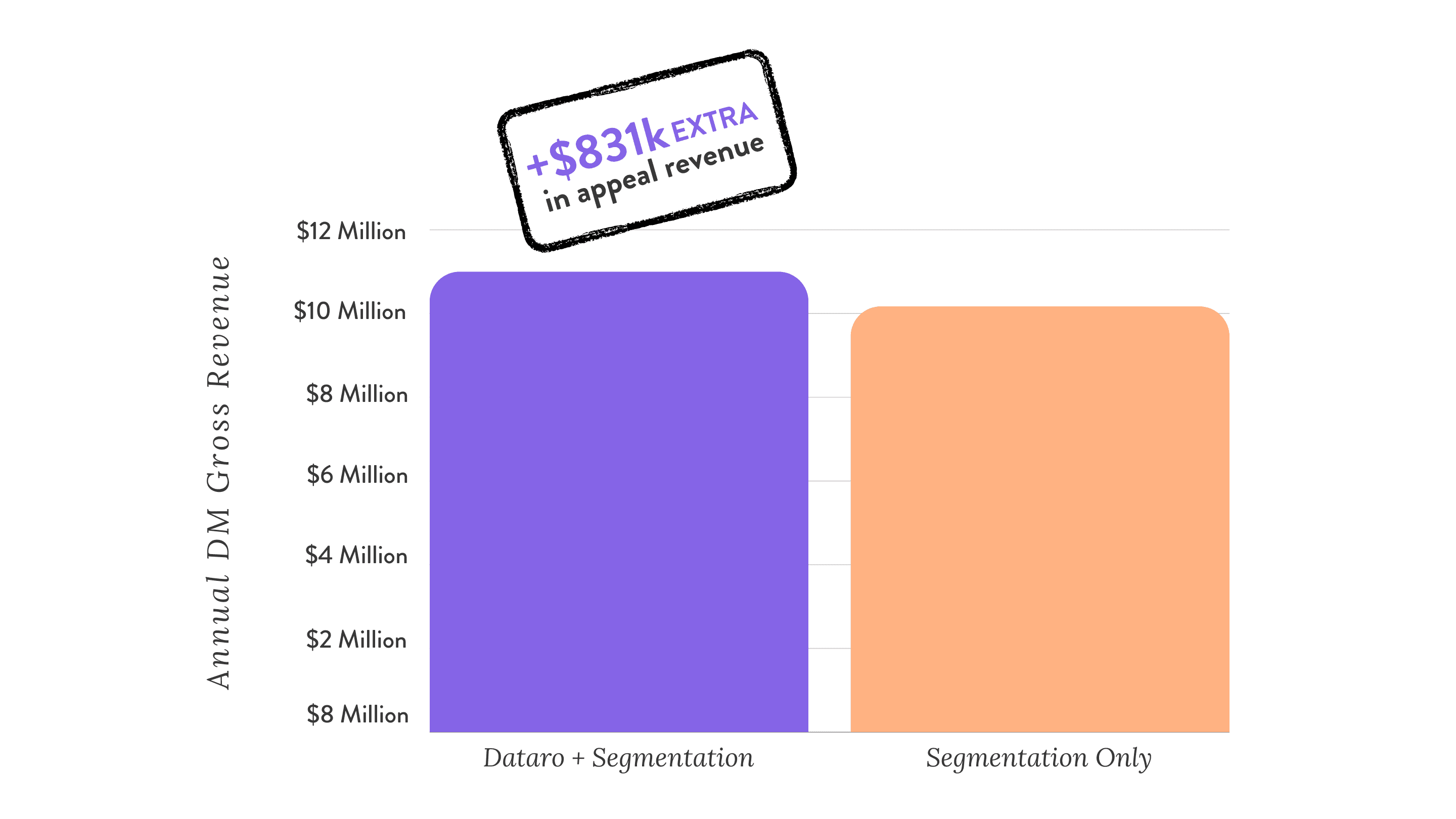 For two years, the nonprofit’s fundraising team tested Dataro’s AI-driven targeting approach alongside their own RFM segmentation (which was based on their own unique behavioral model).