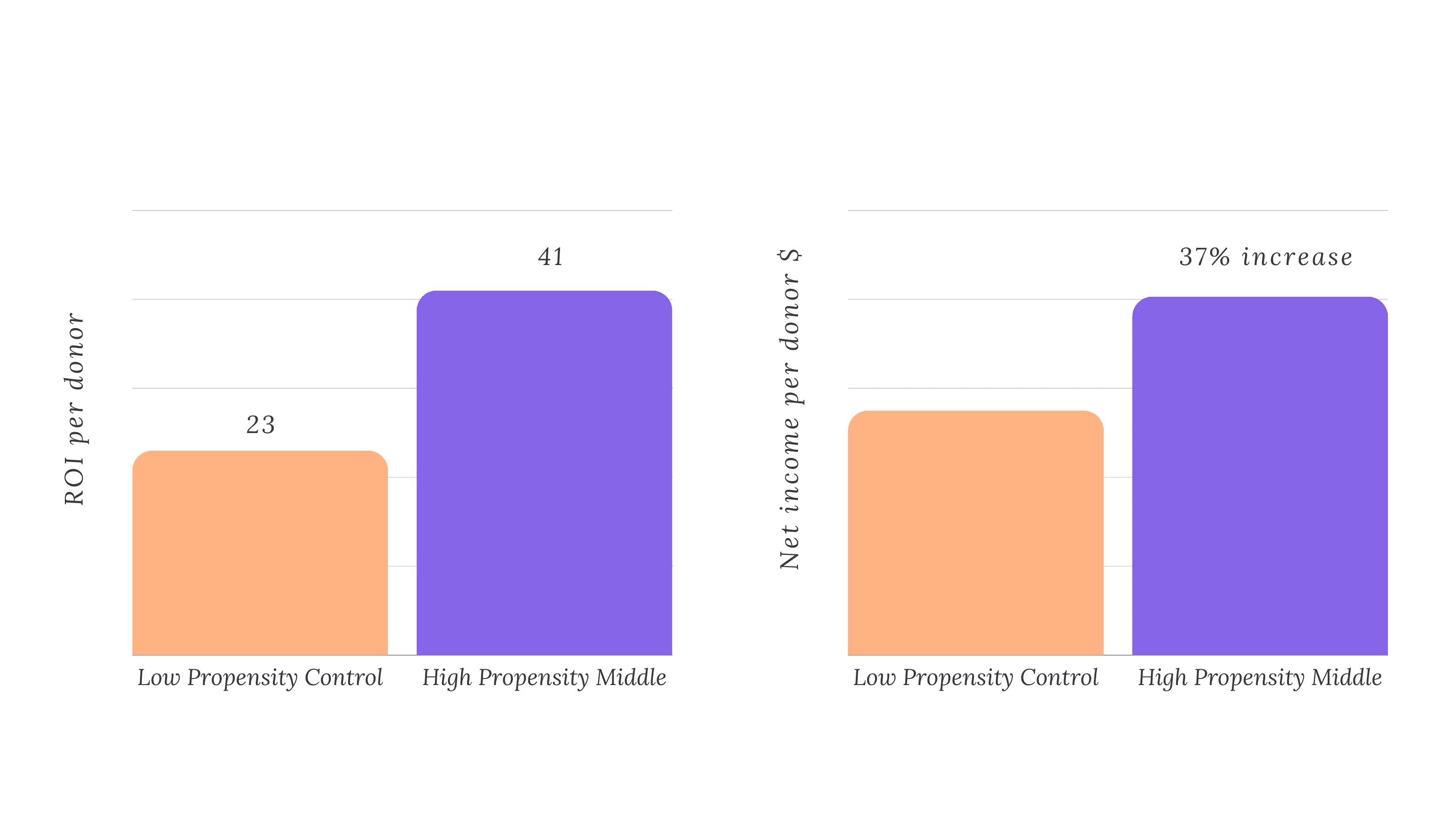 This new approach enabled more efficient resource allocation, allowing key mid-value donors to be prioritized while avoiding excessive focus on low-propensity mid-value donors who contribute less.