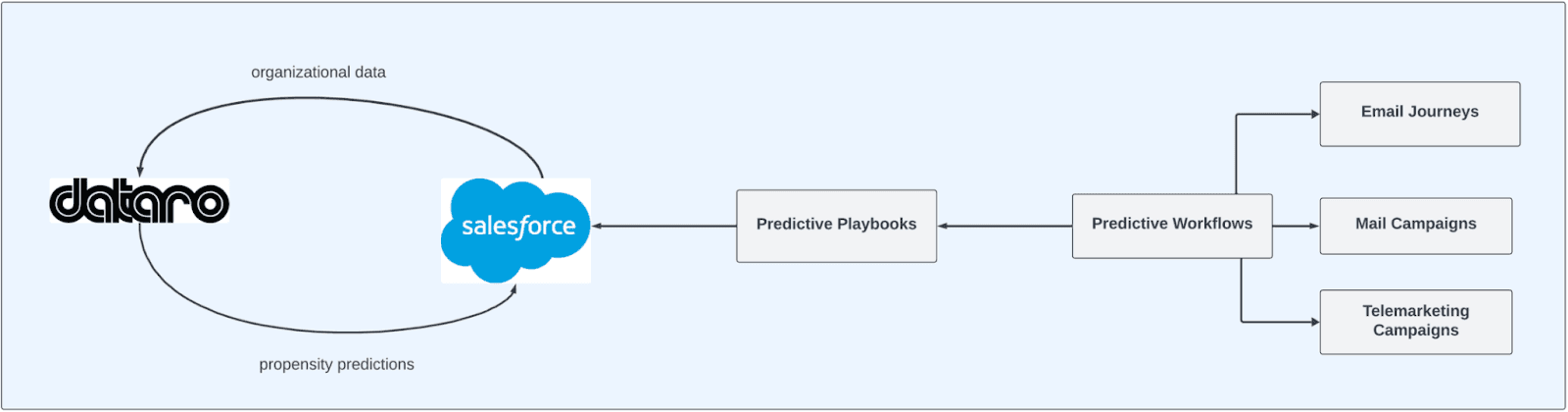 Integrated data was a critical requirement for the CCS team. Dataro’s predictive models integrated directly into their Salesforce database, providing regularly updated donor scores and predictions which indicated each donor’s likelihood of giving, preferred channel, ideal ask amount, and more. The team at CCS was able to build predictive playbooks for their fundraisers, defining the models and workflows that could be used to achieve different objectives, including personalized email journeys, mail campaigns, and telemarketing campaigns.