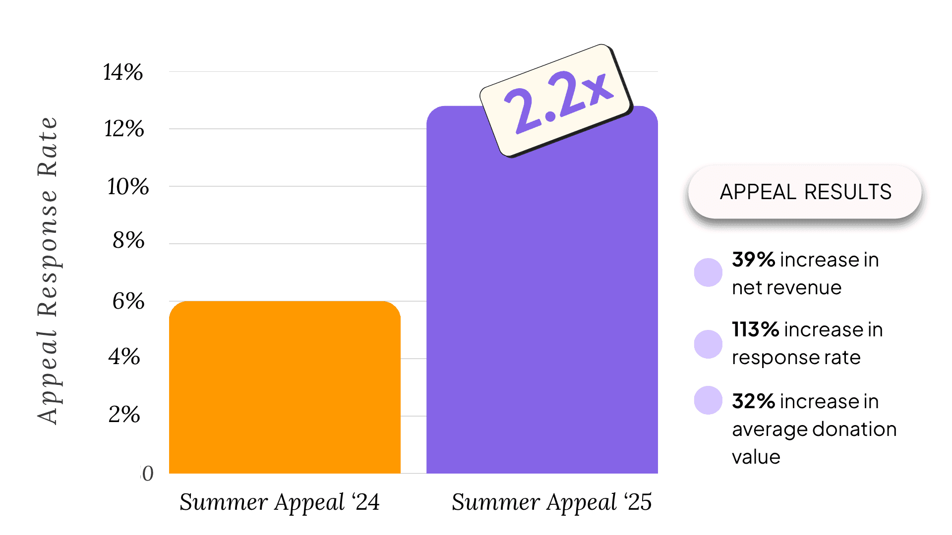 2.2x higher response rate (12.8% vs 6%)