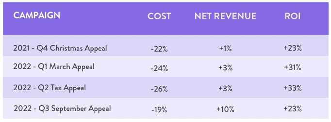Across all four direct mail appeal campaigns, the results were clear: